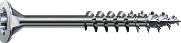 SPAX TFT on puuruuvi osakierteellä yleiskäyttöön. Uppokannallinen (TX). Sopii hyvin esim. levyjen kiinnitykseen puupohjaiseen materiaaliin sekä lautojen ja lattialautojen kiinnitykseen. 4CUT-kärki minimoi materiaalin halkaisun riskiä jopa aivan reunan lähellä. Kromiton WIROX-pinnoite, joka sopii sisäkäyttöön ja ulkotiloihin jossa ruuvit eivät suoraan altistu sääolosuhteille, esim. piharakennukset kuten autokatos ja pergola. Patentoitu runkoprofiili, joka pureutuu nopeasti puun rakennetta säästäen. 4CUT-kärki minimoi materiaalin halkaisun riskiä jopa aivan reunan lähellä. Ei vaadi esiporausta (riippuen puumateriaalista), pureutuu materiaaliin heti. SPAX Original -ruuvauskärki tapilla (T-Star Plus), asettuu ruuvinkantaan optimaalisesti (1/4″:n kuusiokiinnitys – ks. tuotenrot 298360-298363).