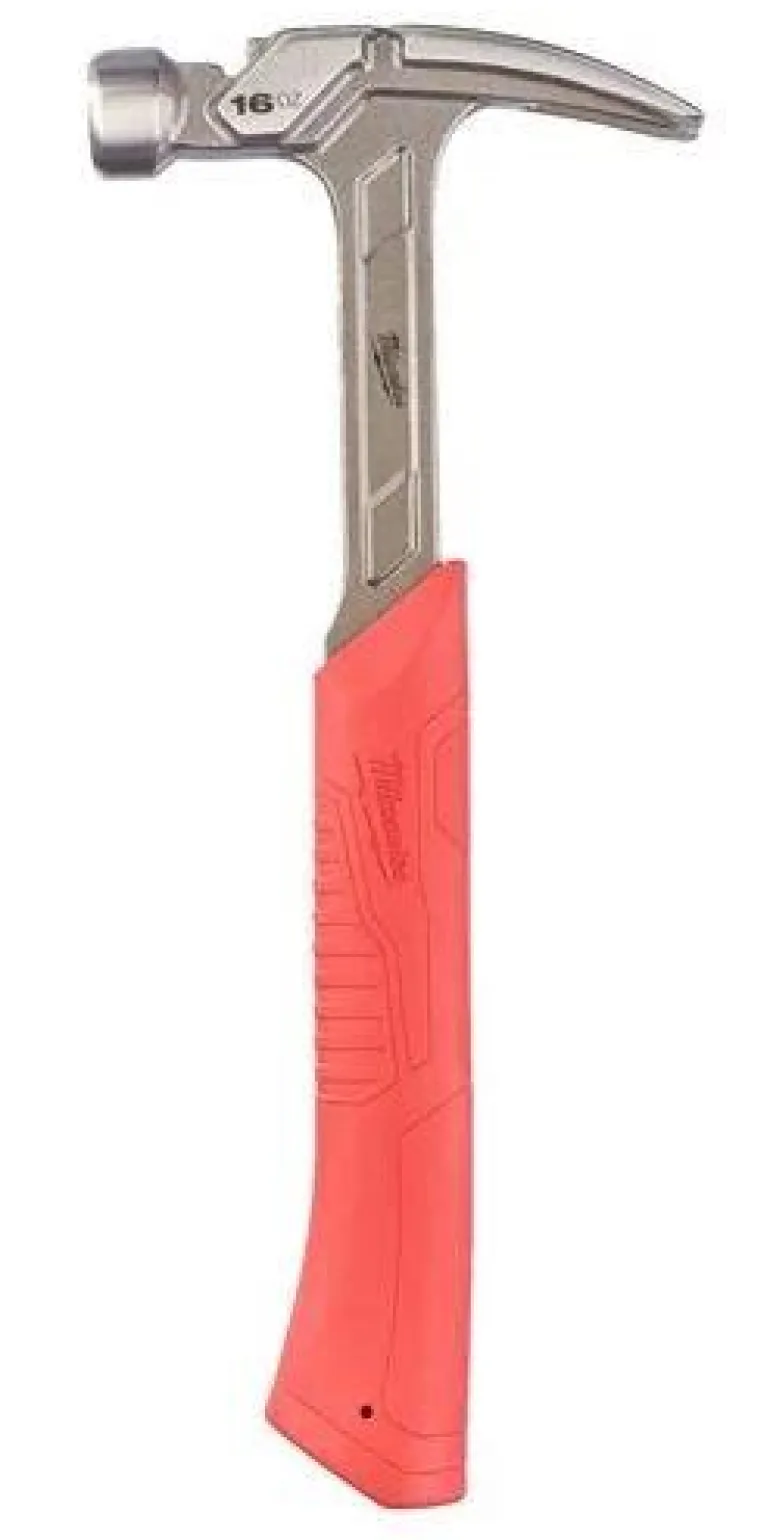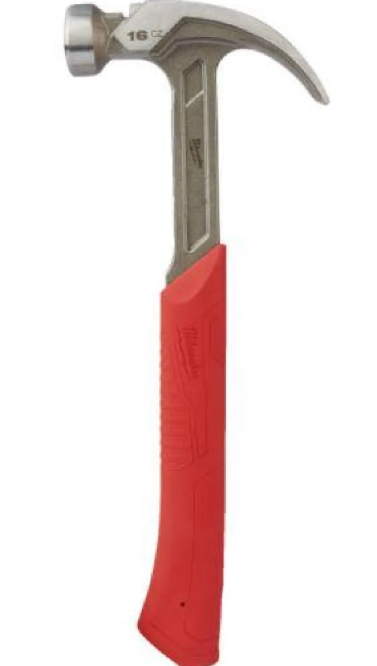 Puusepänvasara, jossa on magneettinen naulanohjain, iskua vaimentava kahva ja kaareva kärki, joka estää materiaalin vaurioitumisen naulanpoiston aikana. Naulanvetäjä sivulla ja kestävä I-beam-varsi murtumattomalla rakenteella. Tarkka tasapainotus lisää käyttäjäystävällisyyttä.