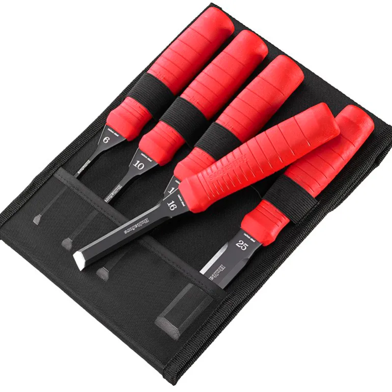 Talttasarja, jossa on 5 erikokoista talttaa, koottuna käytännölliseen kangaskoteloon. Talttojen kestävissä ja täydellisesti hiotuissa japanilaisissa terästerissä on maksimaalisen korroosiosuojan takaava sähköpinnoite (EPD).