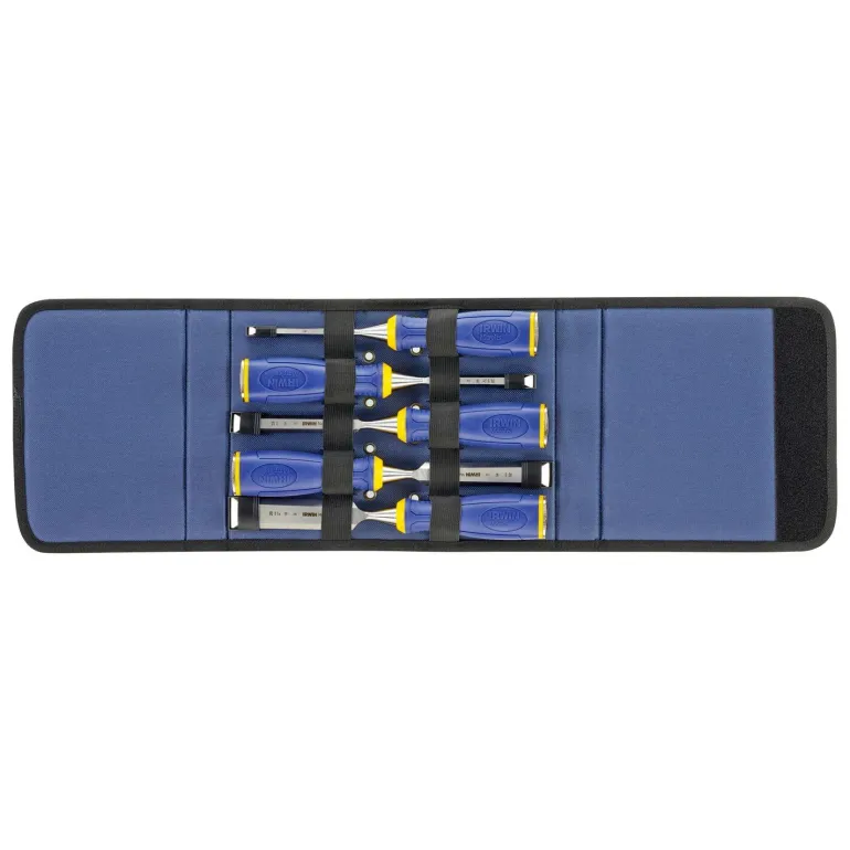Irwin 10503429 on talttasarja, jossa on viisi puutalttaa ja suojus työkaluille. Erinomainen teräslaatu säilyttää hyvin reunojen terävyyden ja kestävyyden.