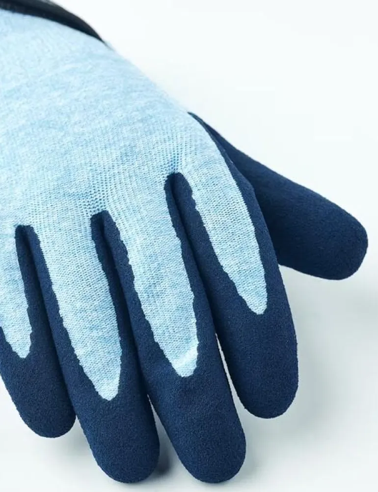 Joustava puutarhakäsine, jossa hyvä pito ja sormenpäätuntuma. Neulottu joustavasta, osittain kierrätetystä synteettisestä materiaalista. Kämmen ja sormet lateksipinnoitettu.