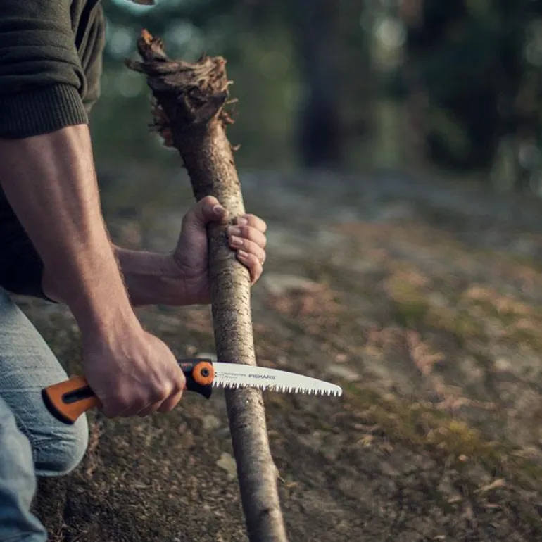 Fiskars SW73 on 160 mm erittäin tehokas saha joka on muotoiltu erityisesti tuoreelle puulle. Sahan terä puree parhaiten vetäen. Mikä parasta, SoftGrip kahva takaa tukevan otteen. Ontto kahva mahdollistaa terän säilytyksen kahvan sisällä kuljetuksen ajan. Saha on täydellinen mukaan esimerkiksi retkelle, voit säilyttää sitä vyölenkilläsi ja terä pysyy suojassa kahvan sisällä.
