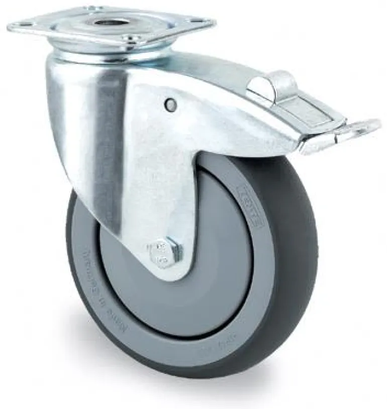 Lämpökumipinnalla varustetut laitepyörät kulkevat pehmeästi ja alustaa säästäen. Pyörässä sinkitty pidike ja kuulalaakerointi. Keskipultin tai litteän kiinnikkeen pidike.