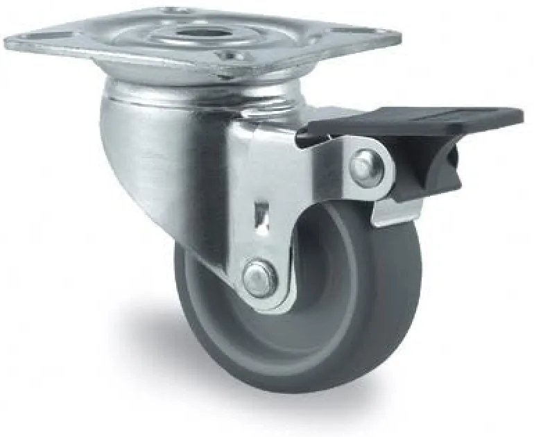Lämpökumipinnalla varustetut laitepyörät kulkevat pehmeästi ja alustaa säästäen. Sinkkipinnoitetut pidikkeet, pyörissä liukulaakerit. Keskipultin tai litteän kiinnikkeen pidike. Liukulaakeroitu pyörä.