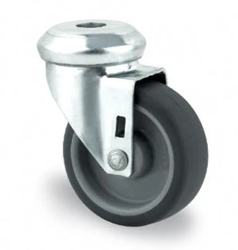 Lämpökumipinnalla varustetut laitepyörät kulkevat pehmeästi ja alustaa säästäen. Sinkkipinnoitetut pidikkeet, pyörissä liukulaakerit. Keskipultin pidike tai litteä kiinnike. Tuotenro 267117 – polyuretaanipinta (PAO).