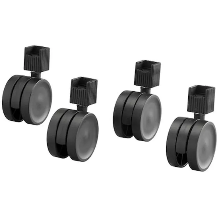 Pyörät, jotka asennetaan koritelineen alapuolelle ja helpottavat telineen liikuttelemista. Toimitetaan 4 kpl:n pakkauksessa.