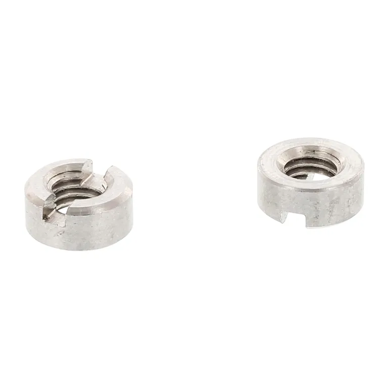 Pyöreä mutteri, M-kierre ja ura. Valmistettu haponkestävästä A4-teräksestä, standardin DIN 546 mukainen.