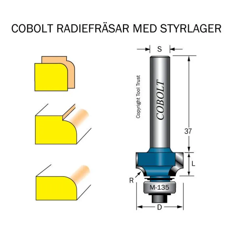Cobolt 217-050 on pyöristysjyrsin/säteissaha S=8, R=5, D=23, L=10. Sis. ohjauslaakerin M-135.