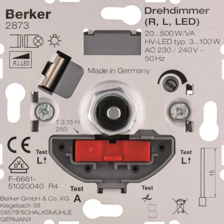 Pyörivä himmennin, etureuna, LED 3–100W VA:lle/Halogeeni 20–500W VA:lle, porrastoiminnolla ja säädettävällä minimitasolla .