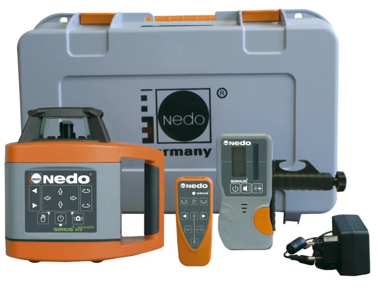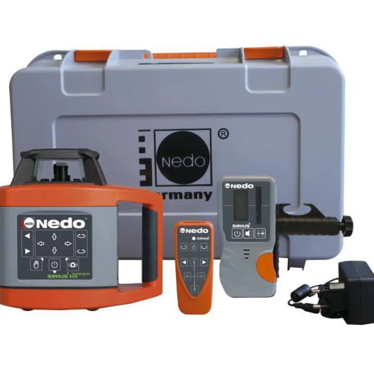Nedo SIRIUS 1 HV on täysautomaattinen pyörivä laser vaaka- ja pystysovelluksiin. Luokan 3R vihreä lasersäde ja iso selkeä näyttö, joka näyttöö pyörimisnopeuden, akun lataustason jne.