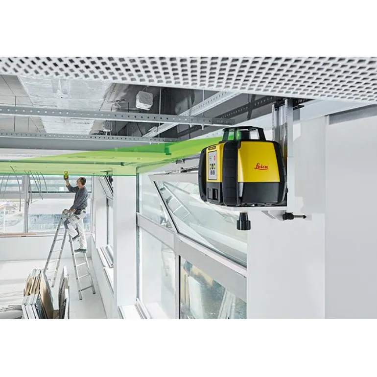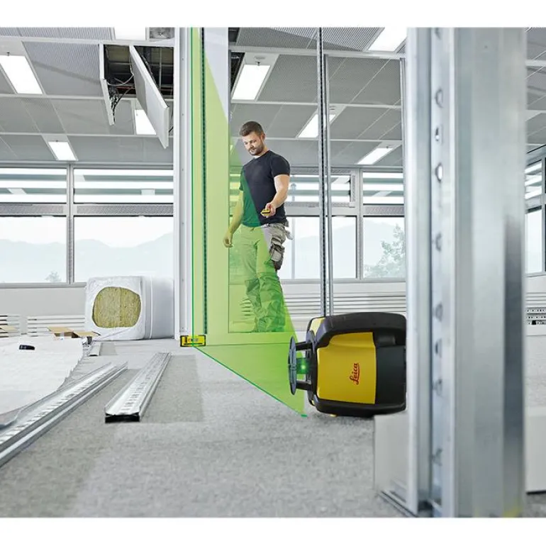 Leica Rugby 640G on erinomainen rakennuslaser vaaka- ja pystyvaaitukseen sekä luotipisteen näyttämiseen. Näkyvän vihreän lasersäteen ansiosta laitetta voi käyttää sisätiloissa ilman laservastaanotinta.