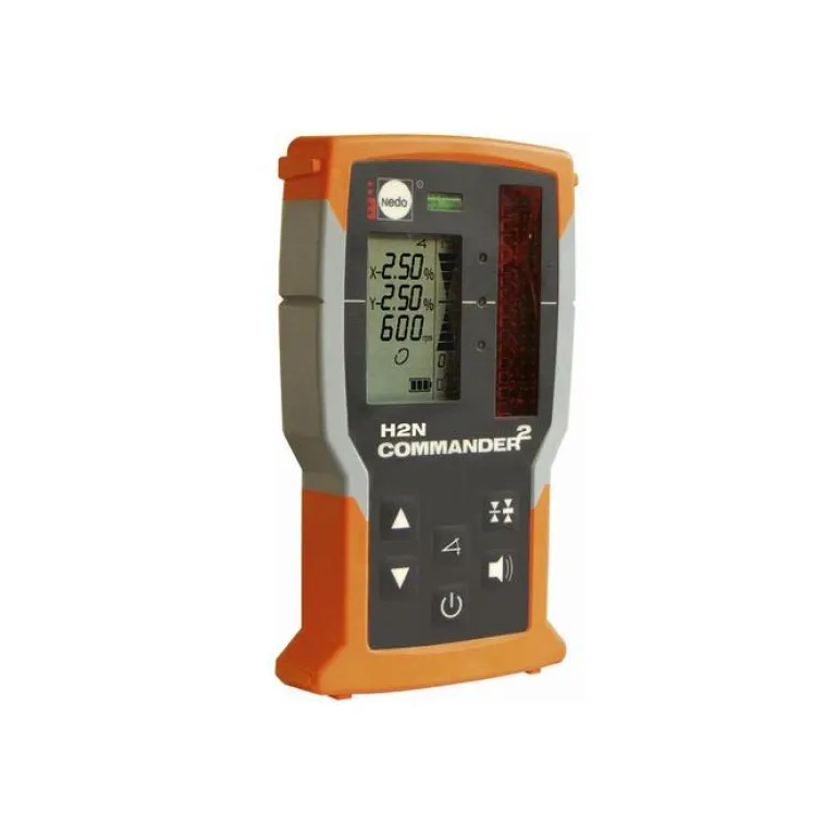 Nedo Primus2 H2N:n työalue on yli 700 metriä tarkkuuden ollessa 1,5 mm/30 m. Voit asettaa halutun kaadon/kallistuksen sekä x- että y-akselille numeroin. Laservastaanottimessa Nedo H2N Commander2 on iso sja selkeä näyttö, joka näyttää kallistuksen, kierrosluvun, laserin akun latauksen yms. Vastaanotin toimii myös toimii kaukosäätimenä laserin kaikille toiminnoille. Laservastaanotin toimii kolmella alkali- tai ladattavalla AA-paristolla.