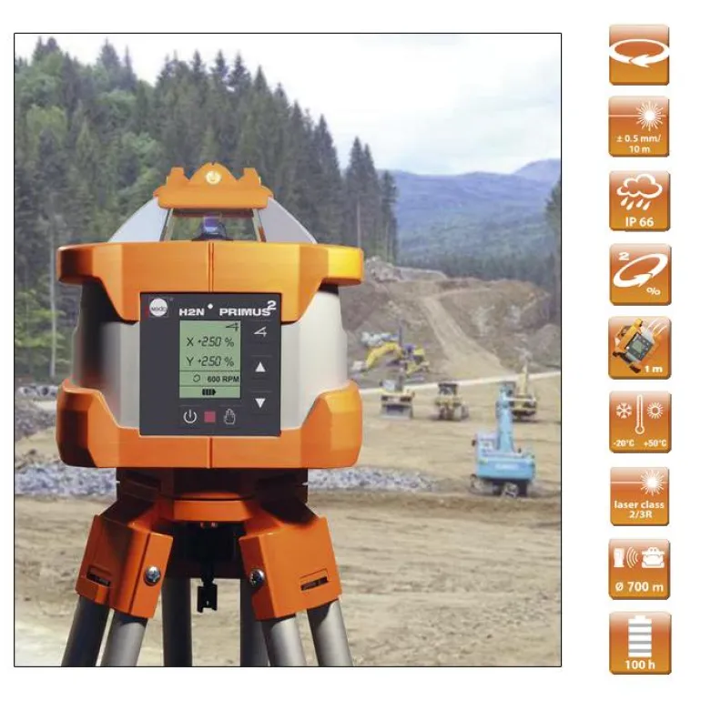 Nedo Primus2 H2N on digitaalinen kaksoiskallistuslaser vaakasovelluksiin. Sopii täydellisesti kovimmille rakennustyömaille, joissa korkeimmat laatuvaatimukset! Nedo Primus2 valmistetaan Saksassa ja se on todellinen todiste saksalaisesta insinööritaidoista.
