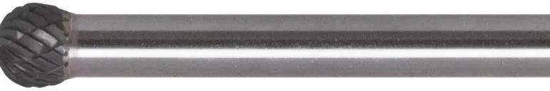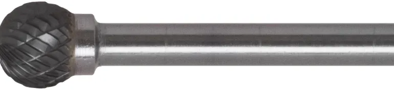 Pallonmuotoinen. Mm. pyöristettyjen pintojen hitsaussaumojen ja reikien purseenpoistoon. Keskihammastus ja lastunkatkaisin. Kovametalli.