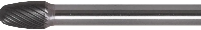 Soikea. Pyöristettyjen pintojen muotoiluun ja purseenpoistoon. Kovametalli.