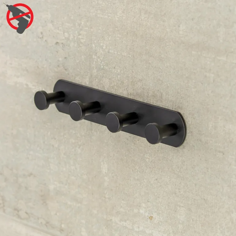 Mattamusta Design4Baths Profile Line-sarjan 4-osainen pyyhekoukku. Valmistettu kiillotetusta ruostumattomasta teräksestä. Helppo asentaa liimalla eikä sitä tarvitse porata. Liima ei sisälly pakkaukseen. Suositellaan Design4Bath-liimatuotteita kiinnittämiseen. Näillä liimoilla saat vahvan, turvallisen ja täysin irrotettavan asennuksen.