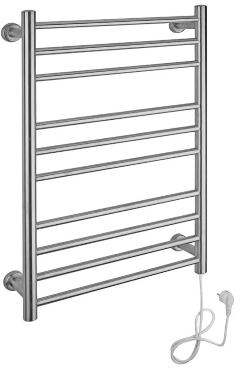 Sähkötoiminen pyyhekuivain seinäasennukseen. Ruostumatonta terästä, 140 cm:n pistokkeellinen johto.