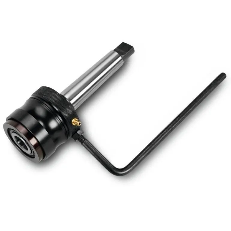 Quickin-pidike, jolla voi porata FEIN-keernaporalla penkki- ja pylväsporakoneilla ja muilla keernaporalaitteilla, joissa on morsekartio. Mukana käsipumppu ja keskitystappi ulkoista leikkuunesteen syöttöä varten.