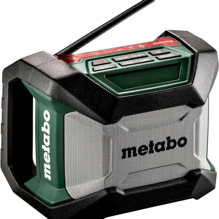 Metabo R 12-18 BT on lujarakenteinen ja kompakti AM/FM-radio, jossa on Bluetooth-yhteys musiikin toistamiseen älypuhelimesta tai tabletista. Radio toimii kaikilla Metabon 12–18 V:n liukuakuilla tai verkkovirralla. Suojausluokitus IP54: kestää roiskeita, pölyä ja iskuja.