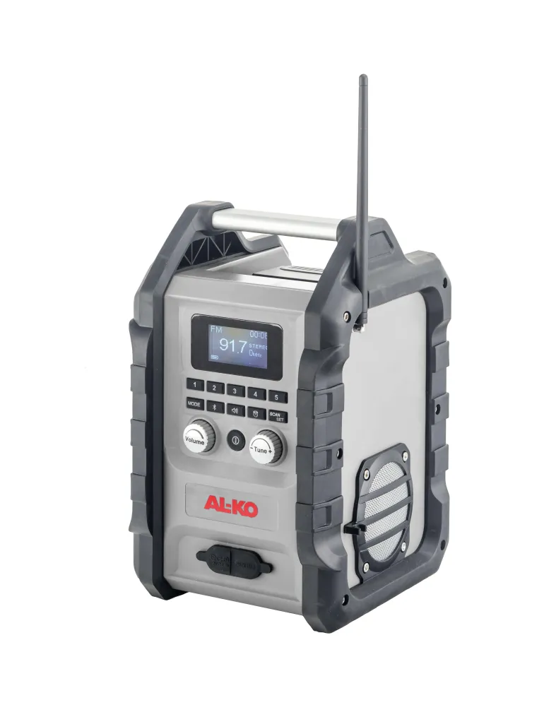 20 V kannettava akkutoiminen radio, joka on varustettu USB-portilla ja Bluetoothilla. Kompaktissa radiossa on kaksi 5 W kaiutinta ja se toimii taajuusalueella FM 87,5–108 MHz / DAB +.