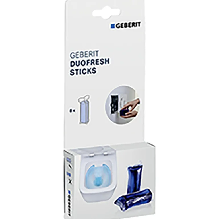 Geberit Duofresh -raikastinpuikot toimitetaan 8 kpl:n pakkauksessa. Sopii kaikkiin Geberit Duofresh -tabletti- ja puikkokehyksiin. Korvaa tuotteen ”Blue tabs”.
