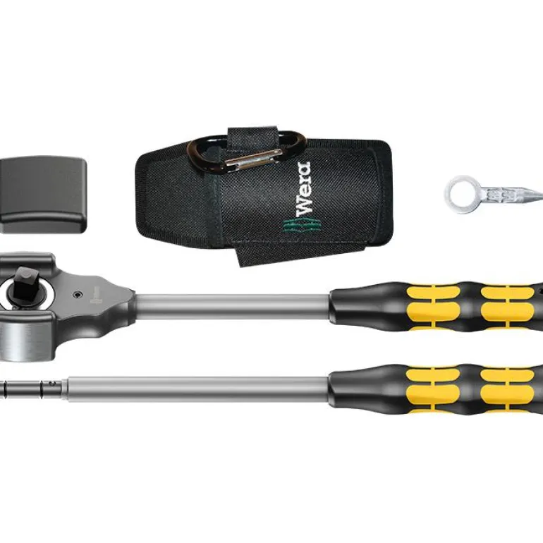 Wera Kolloss All-inclusive Set on suunnanvaihdolla varustettu räikkä, sisältää kotelon ja jatkovarren. Suurillekin kuormituksille. Kaksinkertainen hammastus ja vähäinen 6°:n palautuskulma takaavat nopean ja tarkan ruuvaamisen myös ahtaissa ruuvaustilanteissa. Läpipainettava neliövääntiö myötä- ja vastapäivään kiertämiseen. Räikkää voidaan käyttää myös vasarana. Tyypillisiä käyttökohteita: konetekniikka, telakkateollisuus, kaivosala, sillanrakennus, ajoneuvojen valmistus ja huolto jne.