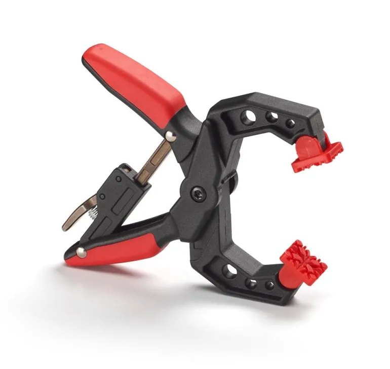 Yhden käden puristin lukitustoiminnolla, joka mahdollistaa erilaiset puristusvoimat. Lasikuituvahvisteinen nailon 2-komponenttisella kahvalla. Muoviset puristuslevyt.