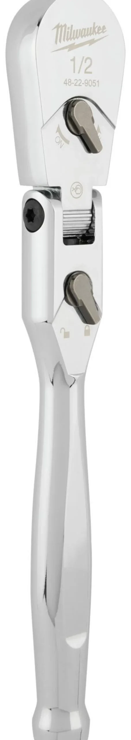 Milwaukee 4932479656 on pitkä lukittava 1/2″-räikkäväännin, jonka 90 hampainen räikkä 4 asteen kaarella mahdollistaa työskentelyn ahtaissa tiloissa. Monipuolinen lukittava pää mahdollistaa pään asennon vaihtamisen 11 eri asennon välillä.