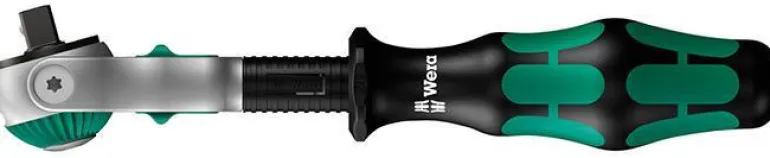 152 mm räikkäväännin, kiinnitys 1/4″, 72 hammasta ja pieni 5° kulma. Räikkäpään voi kääntää vapaasti ja lukita mihin tahansa asentoon liukukoskettimella.