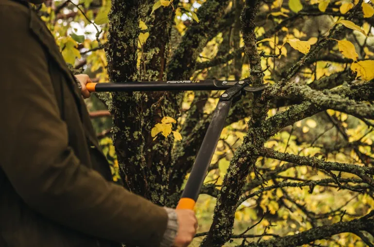 Fiskars L78 on raivaussakset koukkuterällä. Tuoreen puun leikkaamiseen. Ohileikkaavalla mallilla ylettyy helposti oksan juureen. Leikkuuteho: Ø n. 50 mm.