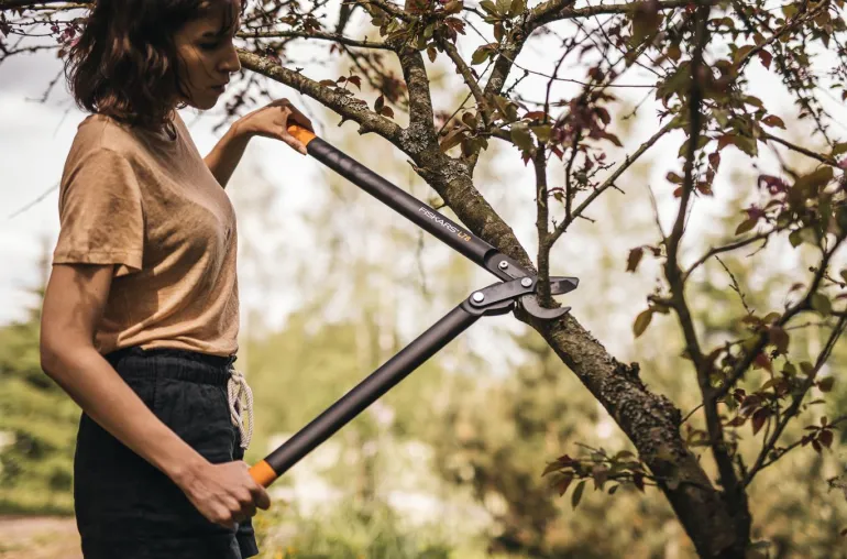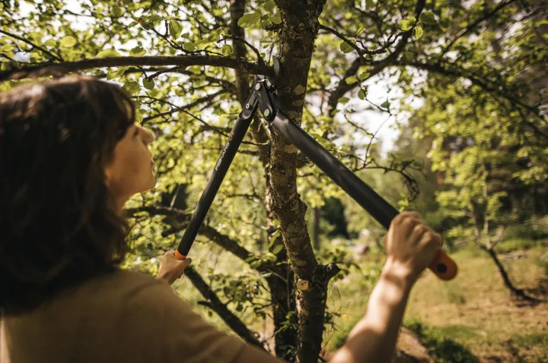 Tuoreen puun leikkaamiseen. Ohileikkaavalla mallilla ylettyy helposti oksan juureen. Leikkuuteho: Ø n. 50 mm.