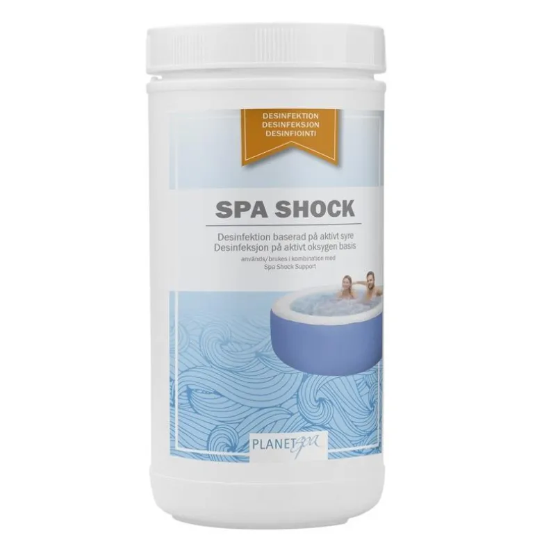 Planet Spa Shock on aktiiviseen happeen perustuva desinfiointiaine rakeiden muodossa. Käytetään yhdessä Spa Shock Support -tuotteen kanssa.
