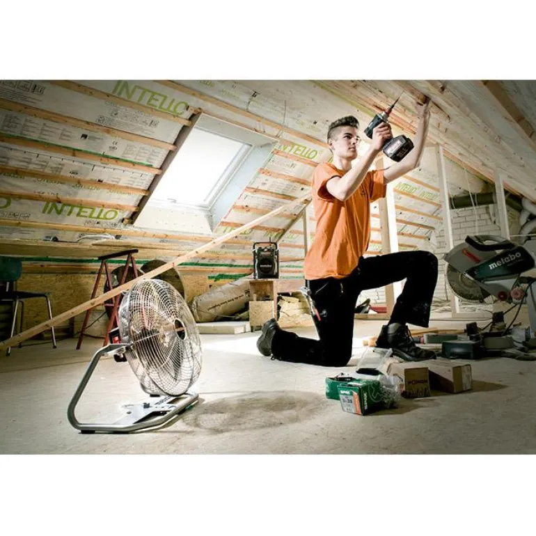 Metabo AV 18 on laadukas akkukäyttöinen tuuletin joustavaan käyttöön verkosta riippumatta. Tuulettimessa on tukeva metalliristikko, joka maksimoi ilmavirtauksen ja minimoi ilmapyörteet. Toimii kaikilla 18 voltin Li-Power- ja LiHD-liukuakuilla.
