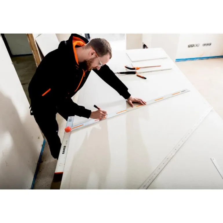 Säädettävä 1200 mm:n rappaussuorakulma, millimetri- ja asteasteikko, voidaan asettaa neljään kiinteään asentoon. Kahva ja terä voidaan taittaa yhteen, ja kahvan voi kääntää oikean- tai vasemmanpuoleiseen asentoon.