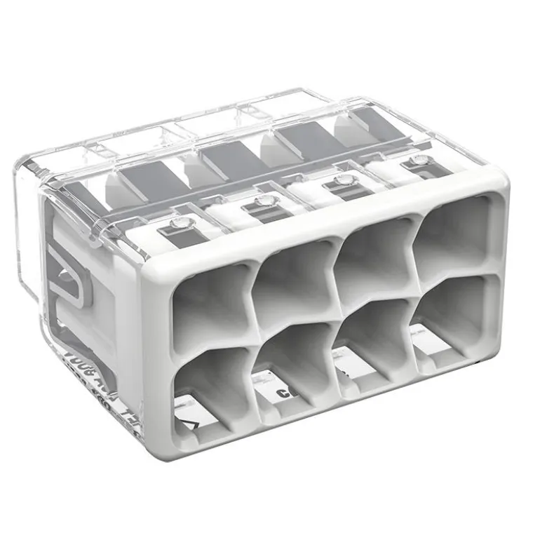 Kompakti jousikuormitettu rasialiitin EK- ja FK -kytkentärasioille, hyväksytty enintään 450 V:n ja 32 A:n jännitteelle.