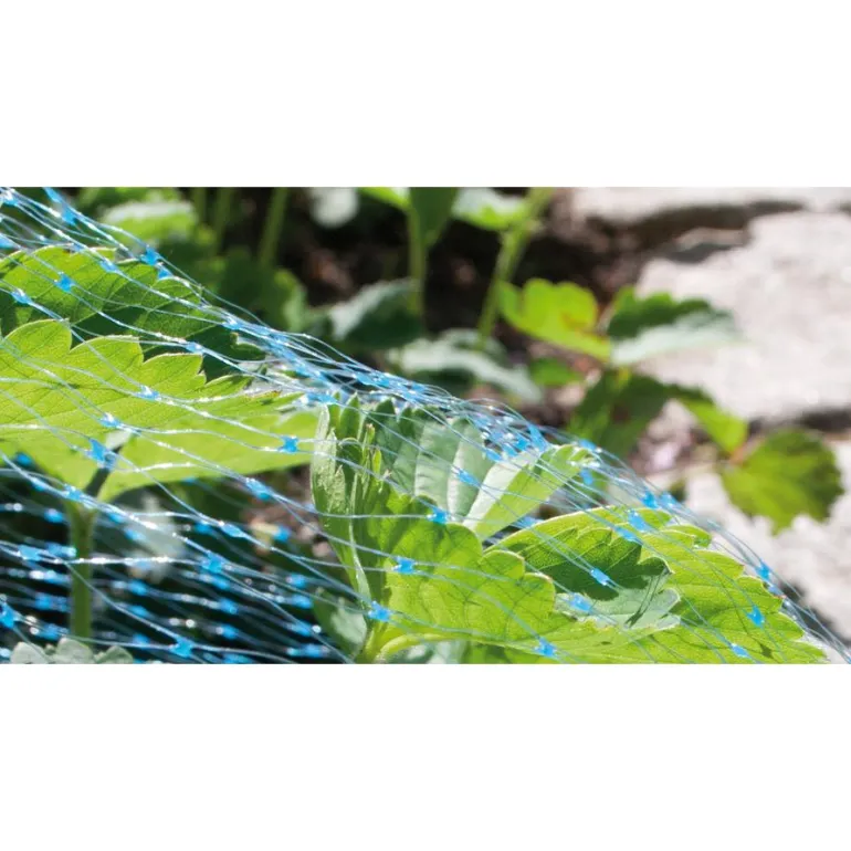 Tiheä 4 x 10 metrin muoviverkko suojaa marjat ja hedelmät linnuilta.
