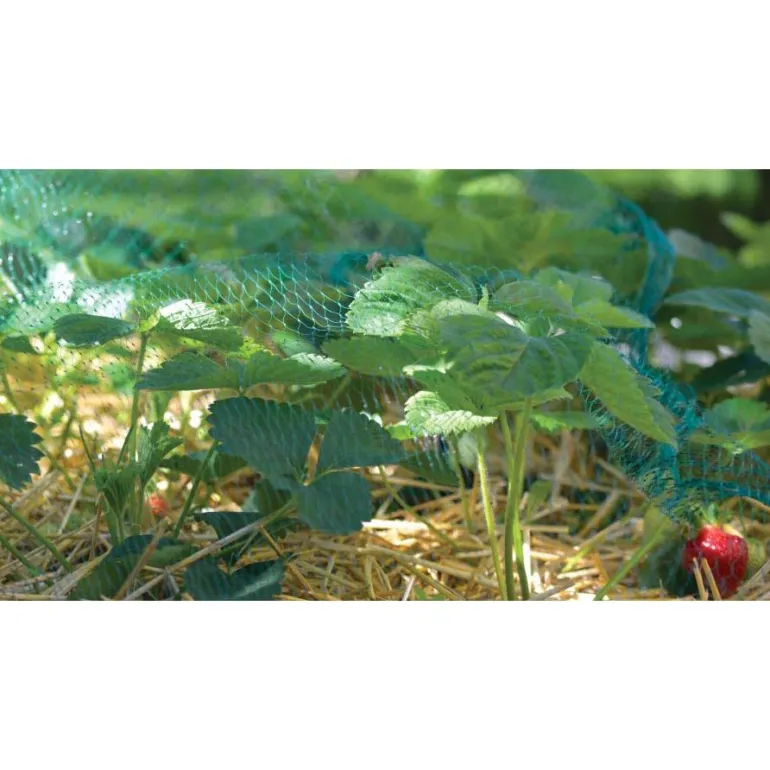 Tiheä 4 x 5 metrin muoviverkko suojaa marjat ja hedelmät linnuilta.