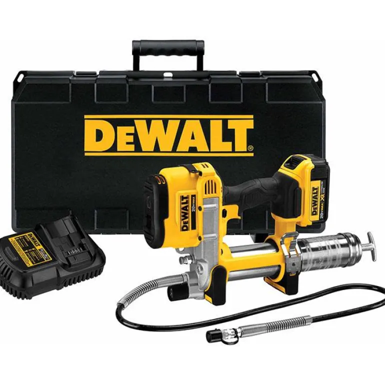 DEWALT DCGG571M1 on 18 V:n rasvapuristin, jonka 1 metrin letku tuottaa 690 baarin työpaineen. Sopii 400 ml:n patruunoille.