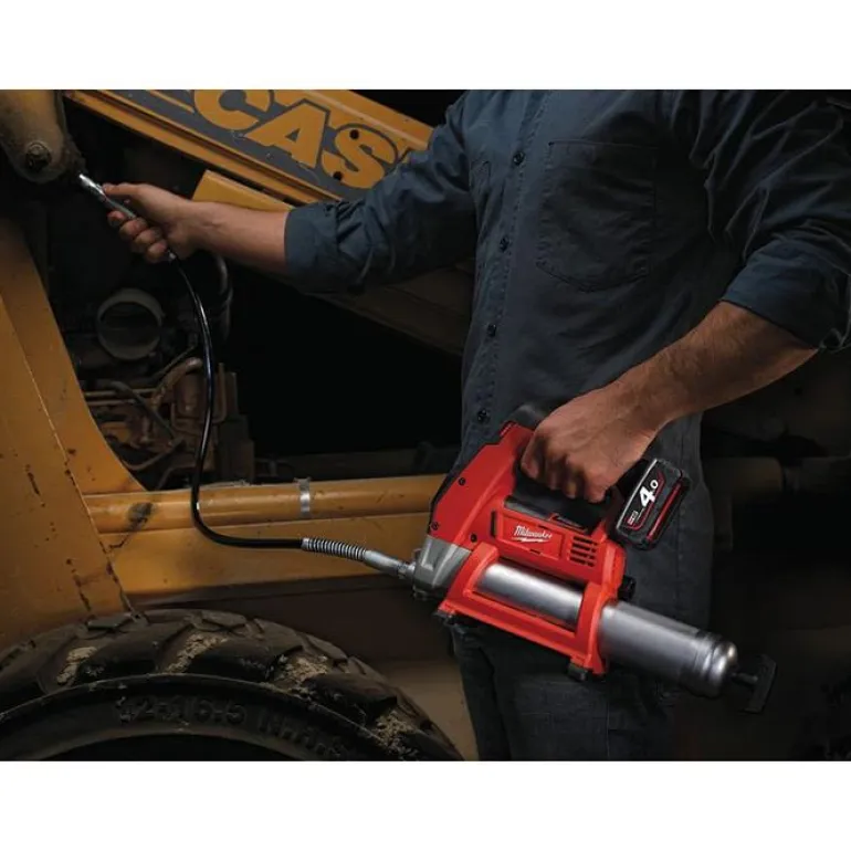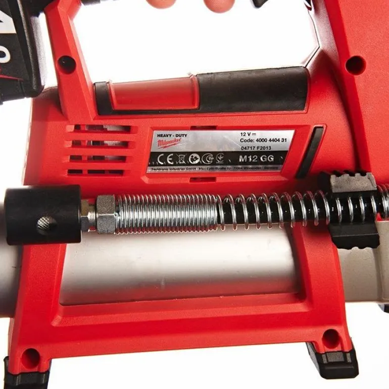 Milwaukee M12 GG on rasvaprässi 12V. Tarjoaa 562 bar työpaineen. Tyhjentää jopa 7 patruunaa yhdellä latauksella. Vain 355 mm pitkä, paino 3,2 kg. Sopii 400 ml patruunoille.