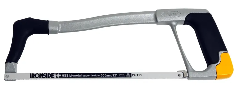 Valettu ja vakaa alumiinirunko. Ergonominen kumikahva sahan molemmissa päissä. Terä voidaan säätää 45ast kulmaan. Toimitukseen sisältyy 1 kpl 300 mm:n Bi-metalli -terä, 24 TPI.