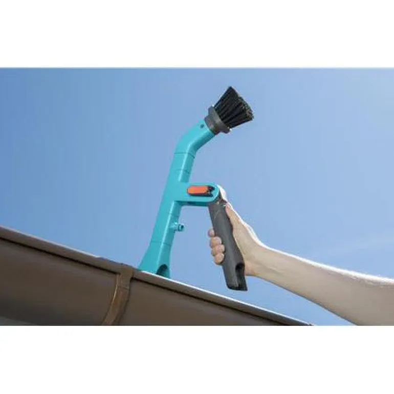 GARDENA Combisystem on räystäskourun puhdistaja, joka on optimoitu räystäskourujen helppoon puhdistamiseen. Toisella puolella olevat jäykät harjakset ja kaksi tehokasta korkealaatuista muovikaavinta toisella puolella mahdollistavat tehokkaan puhdistuksen. Varustettu kahvalla, joten puhdistajaa voidaan käyttää myös ilman Combisystem-kahvaa. Puhdistajaa voi käyttää myös vesiletkun kanssa Gardena Original System -liittimen ansiosta, mikä tekee siitä entistäkin tehokkaamman. Työkulmaa voidaan säätää tarvittaessa pikasäätimellä. Räystäskourun puhdistaja toimii kaikkien GARDENA Combisystemin kahvojen kanssa, joista teleskooppikahvalla saadaan pisin työskentelyetäisyys (noin 5 m).