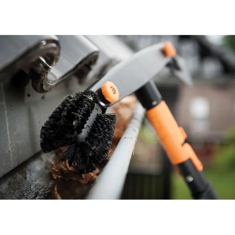 Fiskars QuikFit 1001414 Räystäskourun puhdistaja, harjan ja raaputtimen yhdistelmä puhdistaa räystäskourut tehokkaasti.