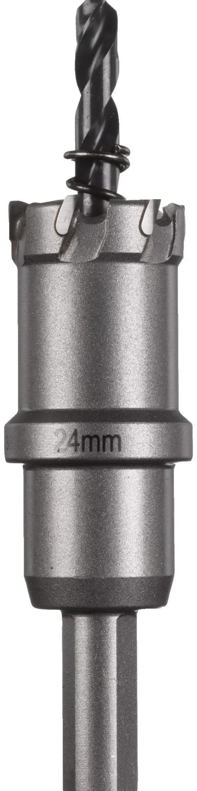 TCT-metallireikäsaha Milwaukeelta. Karbidihammasteknologia tarjoaa parhaan suorituskyvyn, nopeuden ja pitkän käyttöiän. 25 mm poraussyvyys levymetallin ja putkien poraamiseen. Yksiosainen muotoilu, joka vähentää tärinää ja mahdollistaa tarkan porauksen. Turvakaulus estää yliporaamisen. Työntöjousi työntää tulpan ulos, mikä säästää aikaa. 3-reunainen varren muotoilu estää terää liukumasta istukassa ja takaa parhaan tehon siirtymisen. Halkaisijat 16–76 mm 10 mm:n 3-reunaisella varrella ja yli 80 mm:n halkaisijat 13 mm:n 3-reunaisella varrella. Vaihdettava keskiöporanterä ja jousi. Käytä viilentävää voiteluainetta pidentääksesi terän käyttöikää. Käytä metalleihin leikkausöljyä, alumiinille tärpättiä ja muoville vettä. Kuivaporaus valurautaan. Sopii teräksen poraamiseen (<1200 N/mm²) 4 mm asti, ruostumattoman teräksen poraamiseen 2 mm asti sekä alumiinille, valuraudalle, kuparille, lasikuidulle ja PVC:lle.