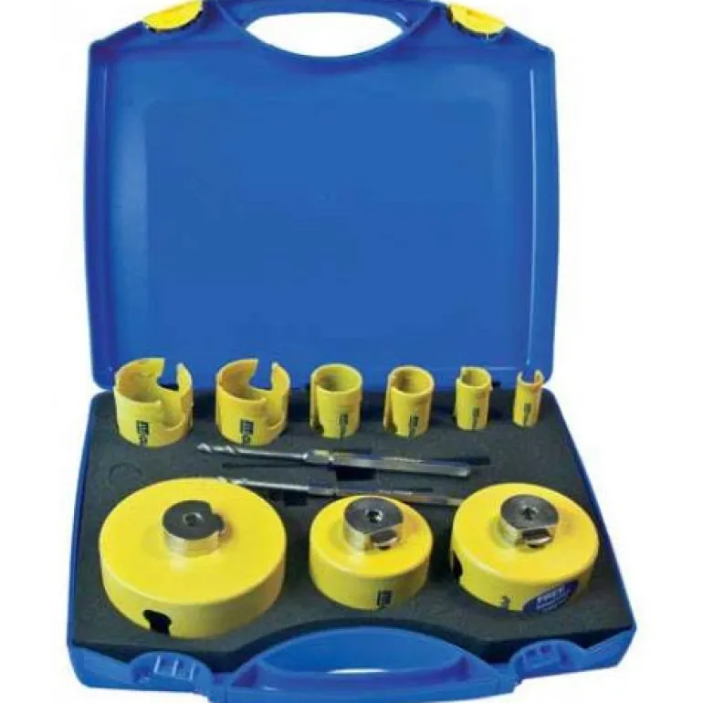 Reikäsahasarja, 11 osaa, sisältää 9 erikokoista reikäsahaa ja 2 HSS-poraa. Toimitetaan kätevässä laukussa.
