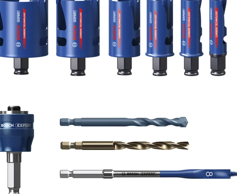 Bosch Professional EXPERT Construction Material PC Plus Universal -reikäsahasarja porakoneille/ruuvinvääntimille ja iskuporakoneille. Soveltuvat pehmeälle puulle, lastulevylle, tiilelle, pehmeille keraamisille laatoille ja kuitumuoveille (GFK, CFK). Hiotut ja teroitetut hienot kovametallihampaat lujuuden ja kestävyyden takaamiseksi. Putki- ja sähköasentajien perustyö edellyttää tiilen, pehmeiden laattojen ja kipsilevyn sahausta rakennustyömaalla tai remontoitavassa työkohteessa. Harvat reikäsahat kestävät useiden erilaisten rakennusmateriaalien käsittelyssä, mutta EXPERT Construction Material PC Plus kestää. Yksi pitkäikäinen reikäsaha pystyy useisiin erilaisiin töihin.