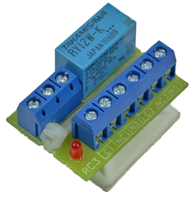 RC 4 on hyvin pieni ja yleismallinen relekortti AC- tai DC-syöttöä varten. Varustettu kaksinkertaisella vaihtoreletoiminnolla (NC/NO), 2 A. Liitäntä tapahtuu ruuviliittimellä, jossa on hissitoiminto.