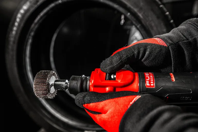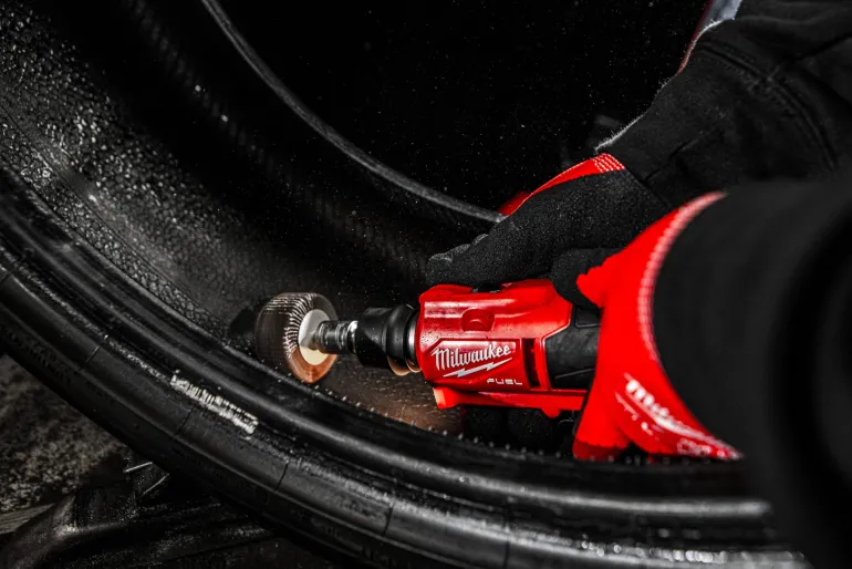 M12 FUEL rengastyökalussa on kaksi nopeustilaa kalvinta- ja hiontatehtäviin. 7/16″ pikaistukka mahdollistaa nopean ja helpon tarvikkeiden vaihdon. Portaaton nopeudensäätö tuottaa parhaan työkalun hallittavuuden. Turvalukot estävät tahattoman käytön, mikä pidentää koneen ja akun käyttöikää. Optimaaliset nopeusasetukset tarjoavat 1200 kierr./min ensimmäisessä tilassa ja 2500 kierr./min toisessa tilassa, mitkä auttavat välttämään kumin polttamista ja renkaan vaurioitumista. LED-työvalo valaisee työstettävän pinnan ja virtamittari ilmaisee jäljellä olevan käyttöajan. Toimii kaikilla MILWAUKEE M12 akuilla