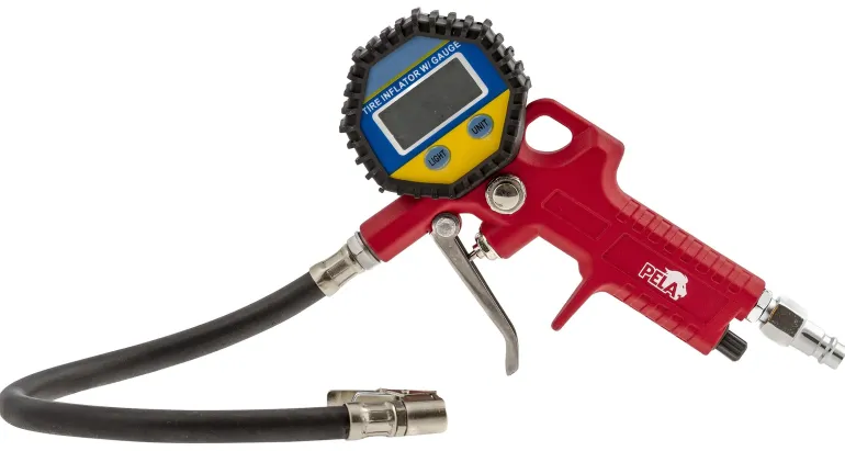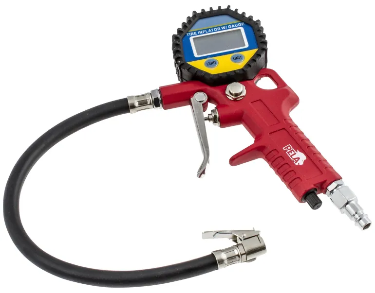 PELA 495947 on digitaalinen renkaantäyttölaite , jossa on selkeä LCD-näyttö. Mukana joustava 36,5 cm:n kumiletku pikaliittimellä.
