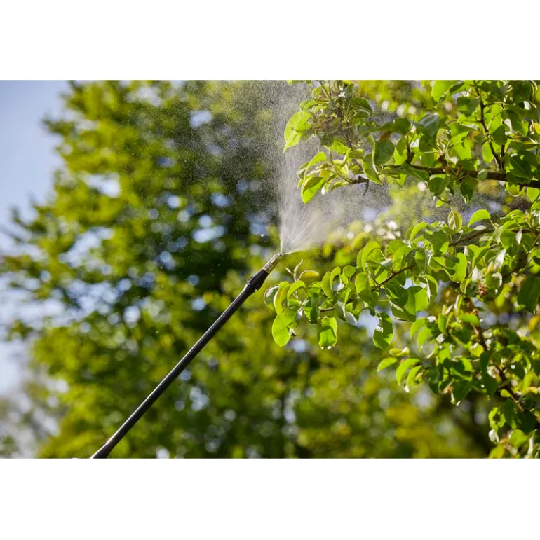 Nesteiden, tavallisten kasvinsuojeluaineiden ja omien seosten täyttäminen toimii aina täydellisesti suuren suodatinaukon ansiosta. Sovellus on joustava teleskooppisen sprinkleritangon ollessa kädessä. Teleskooppinen ruiskuvarsi tekee käsittelystä paitsi helppoa, mutta se mahdollistaa myös suuren ruiskutussäteen. Varren avulla voit ulottua lehtiin, jotka sijaitsevat kauempana.