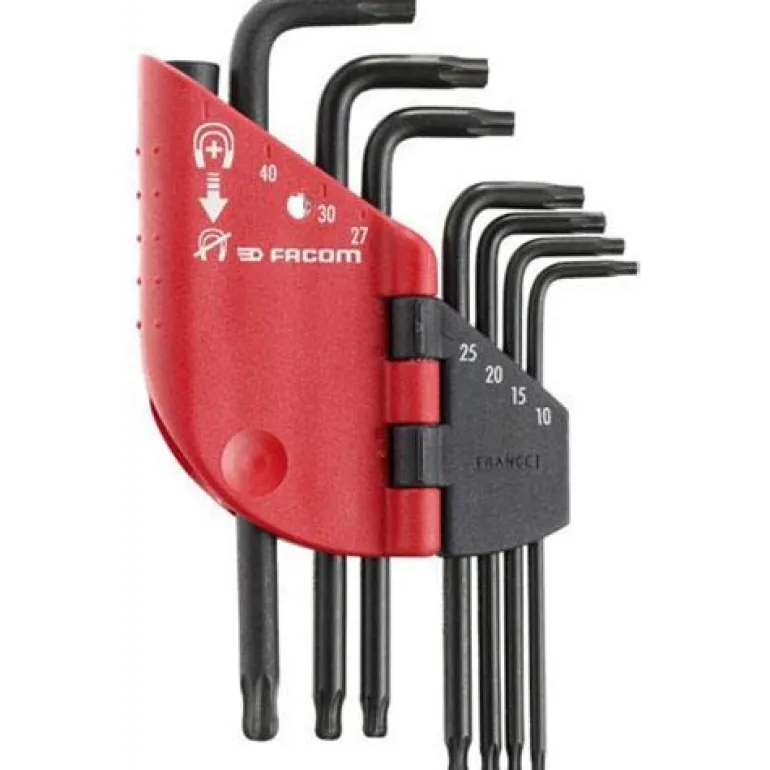 Facom 89SR.J7PB on ResisTorx-avainsarja, jossa on 7 erikokoista avainta. Avaimet on pakattu kompaktiin koteloon, josta tarvittava koko on helppo valita.